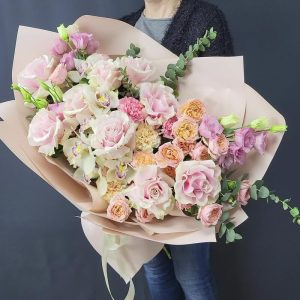 ВАЛЕНТИНА премиум корзинка с пионовидные розами и орхидеями