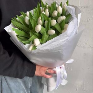 Букет из 35 тюльпанов пионовидных микс в дизайнерской упаковке