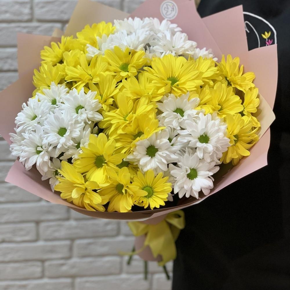 Букет из ромашковой хризантемы Желто-Белый в Бакале