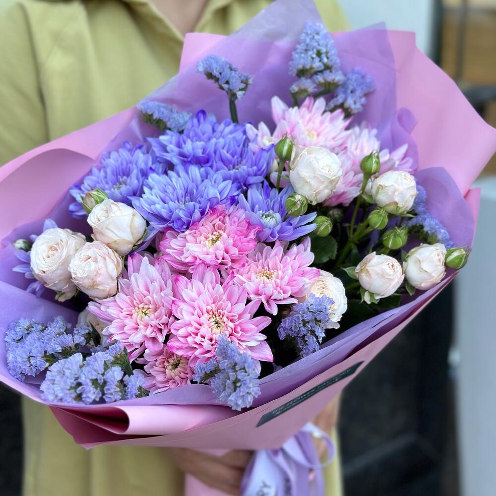 Букет “Лавандовый микс” – это воплощение утонченной красоты и нежности природы. Хризантемы приносят в букет атмосферу загадочности и изысканности, добавляя ему нежные оттенки и феерическую красоту. Розы, в свою очередь, символизируют чистоту, свежесть и возвышенность.